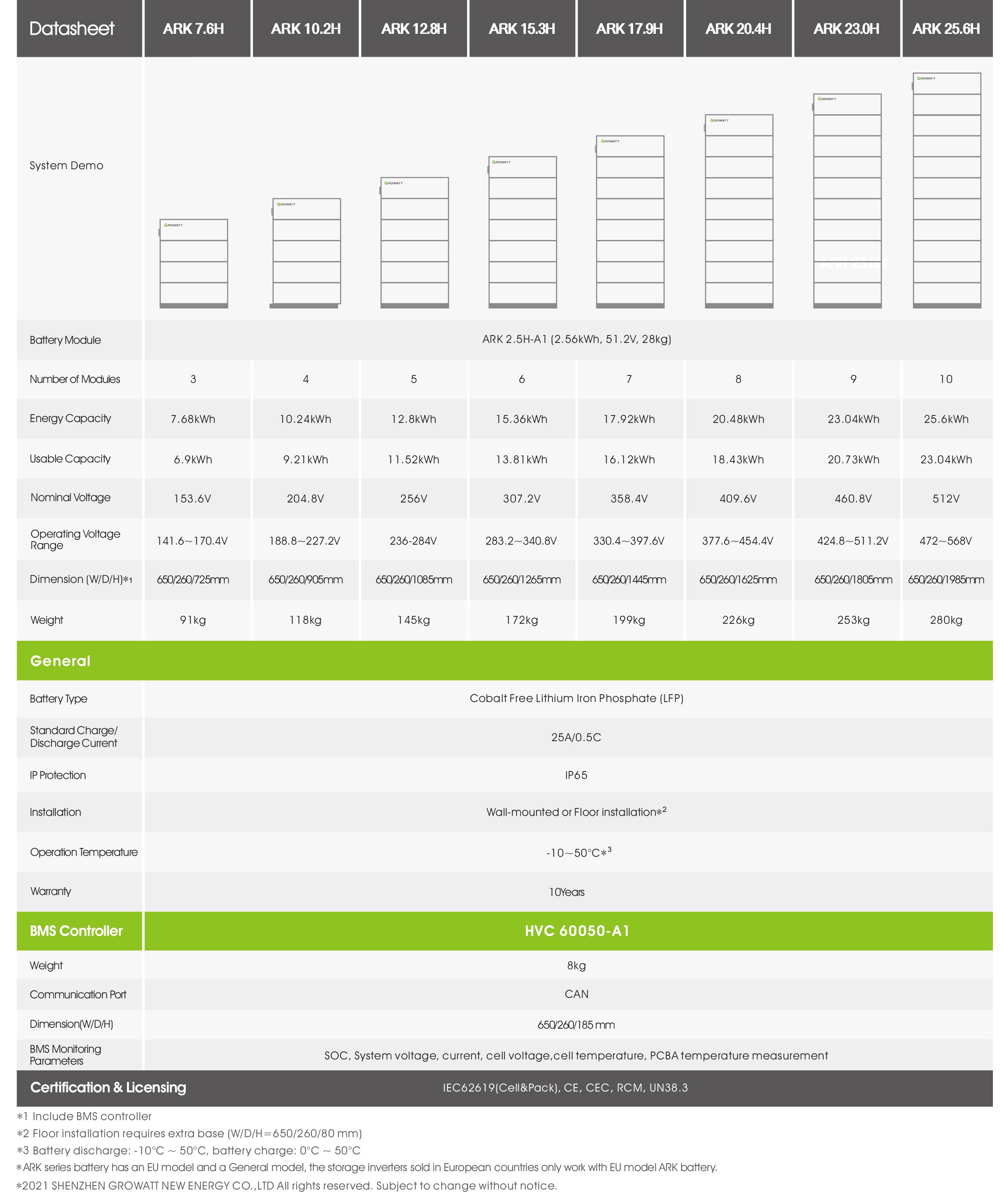 Growatt ARK-10.2H (10.24 kWh) Système de batterie Batterie domestique Haute tension 10 Années de Garantie Produit