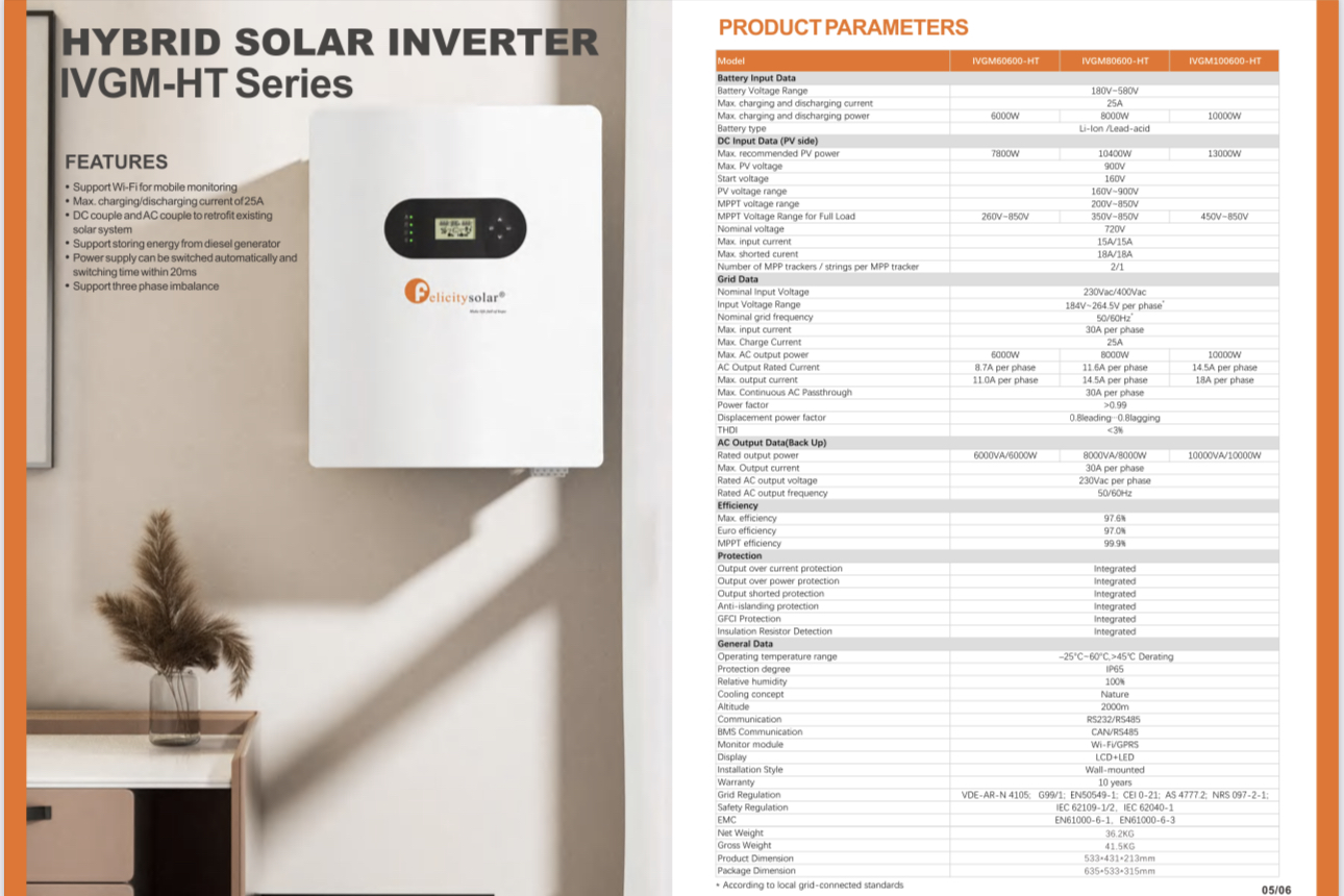 Maak kennis met de nieuwste innovatie van Felicity Solar, de IVGM100600-HT 1 faseomvormer.