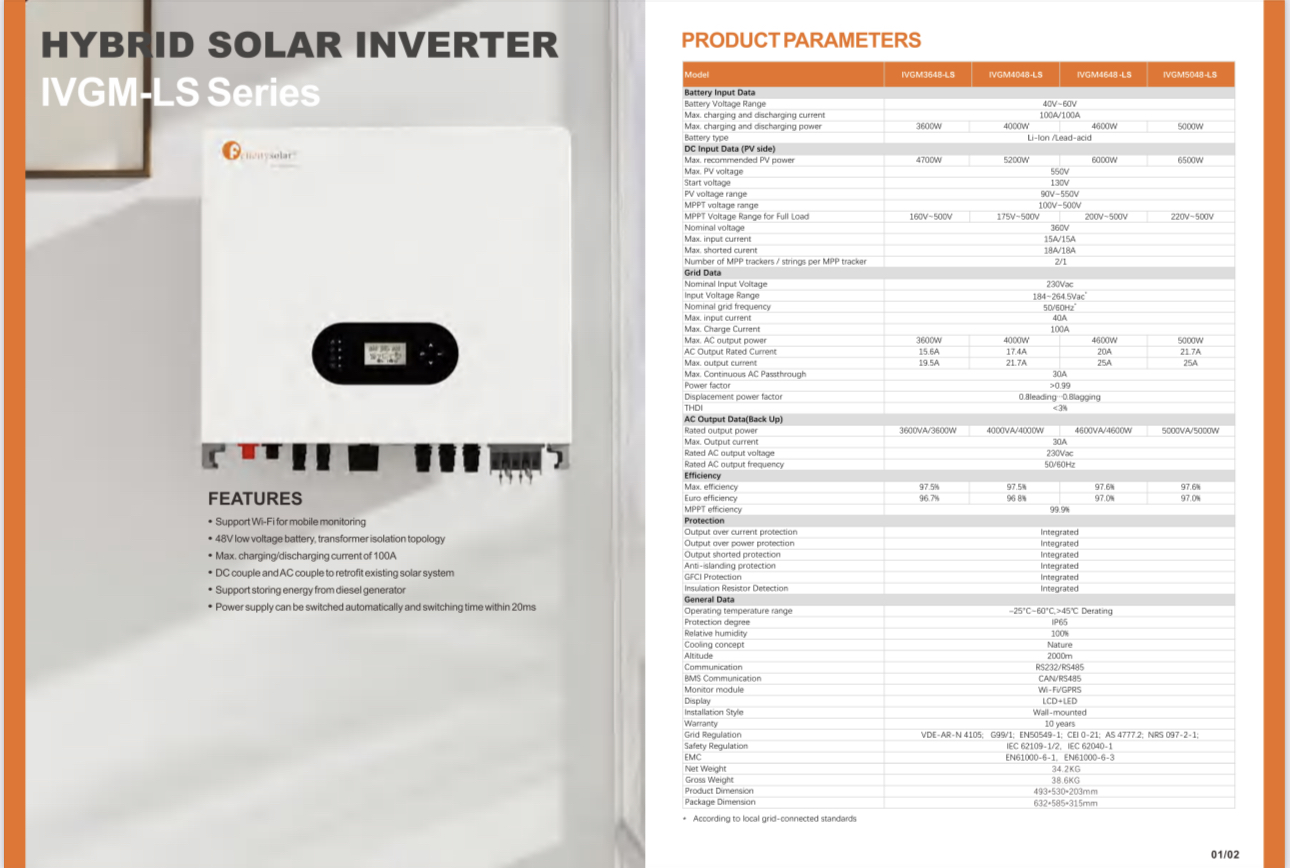 Kies Felicity Solar met zijn IVGM5048-LS voor uw behoeften aan zonne-energie en ervaar uitzonderlijke kwaliteit en betrouwbaarheid.